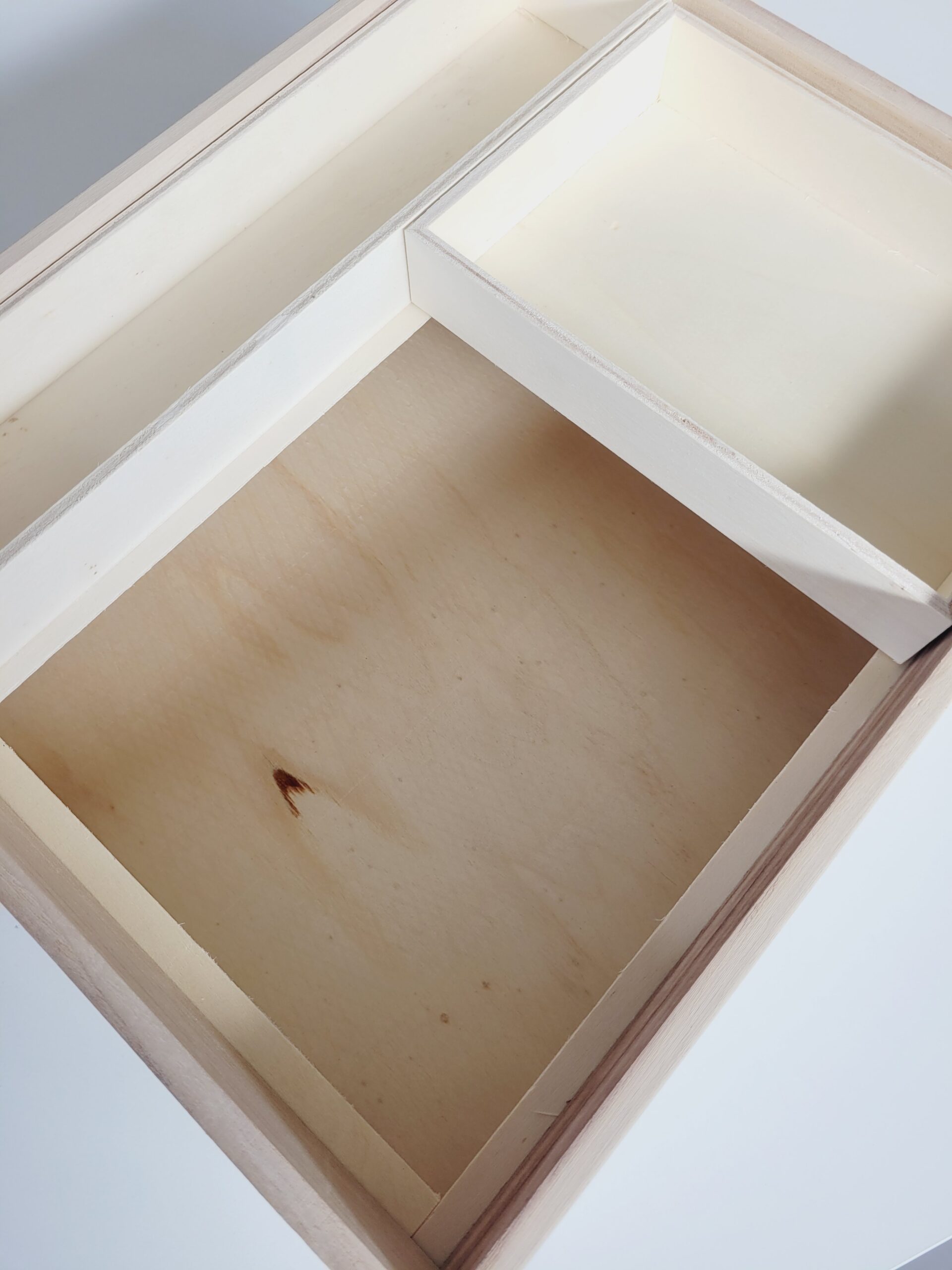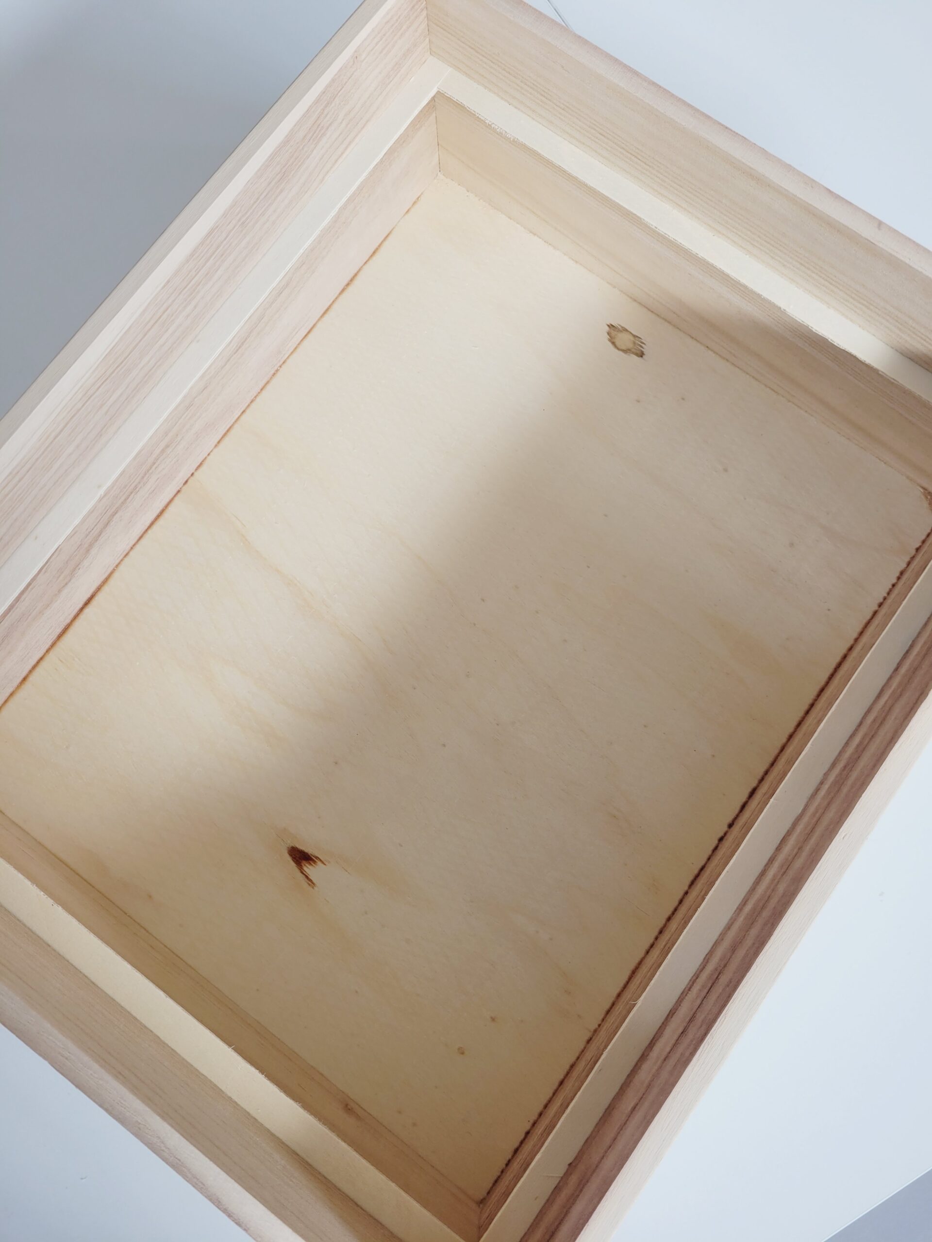- Caixa em madeira natural com tampa amovível