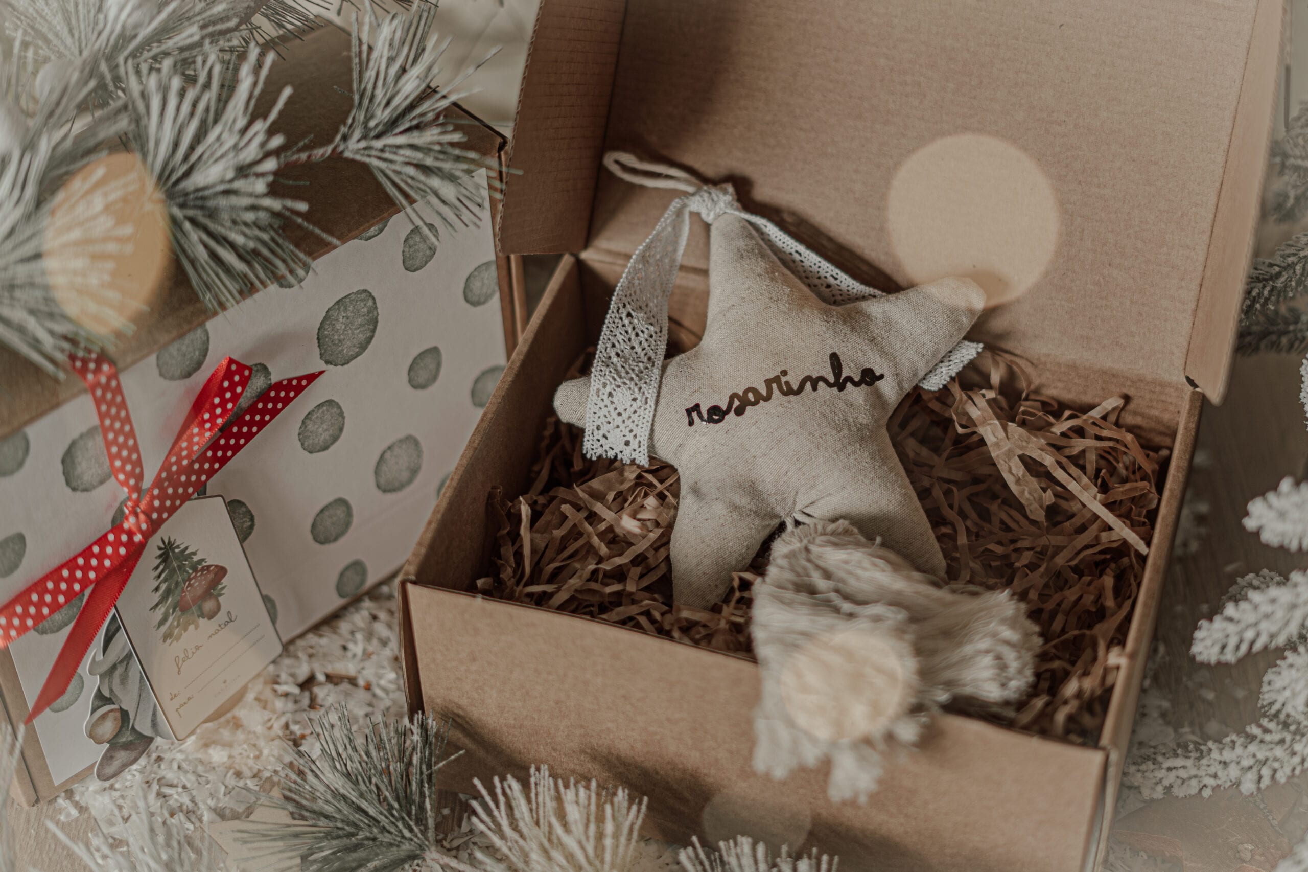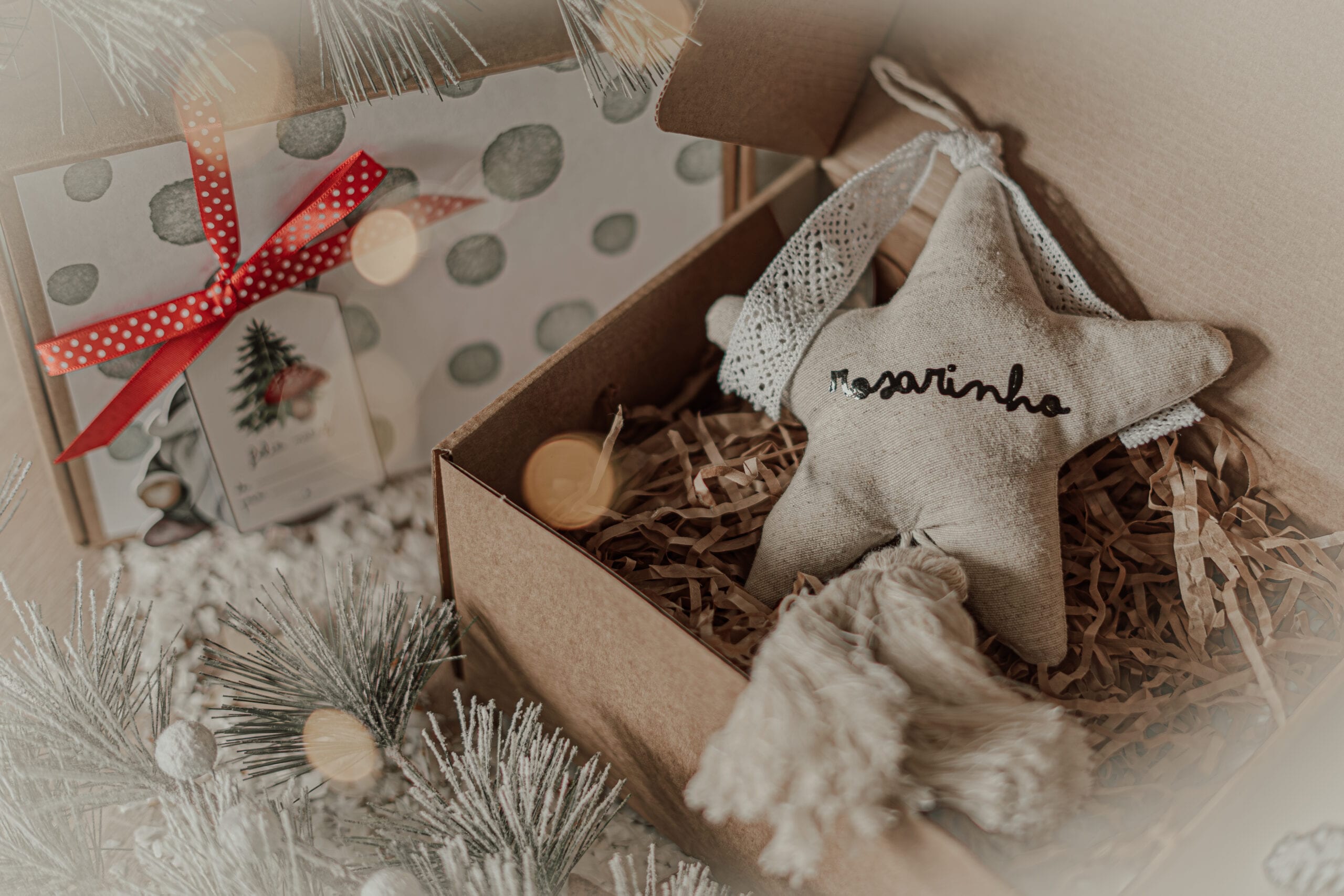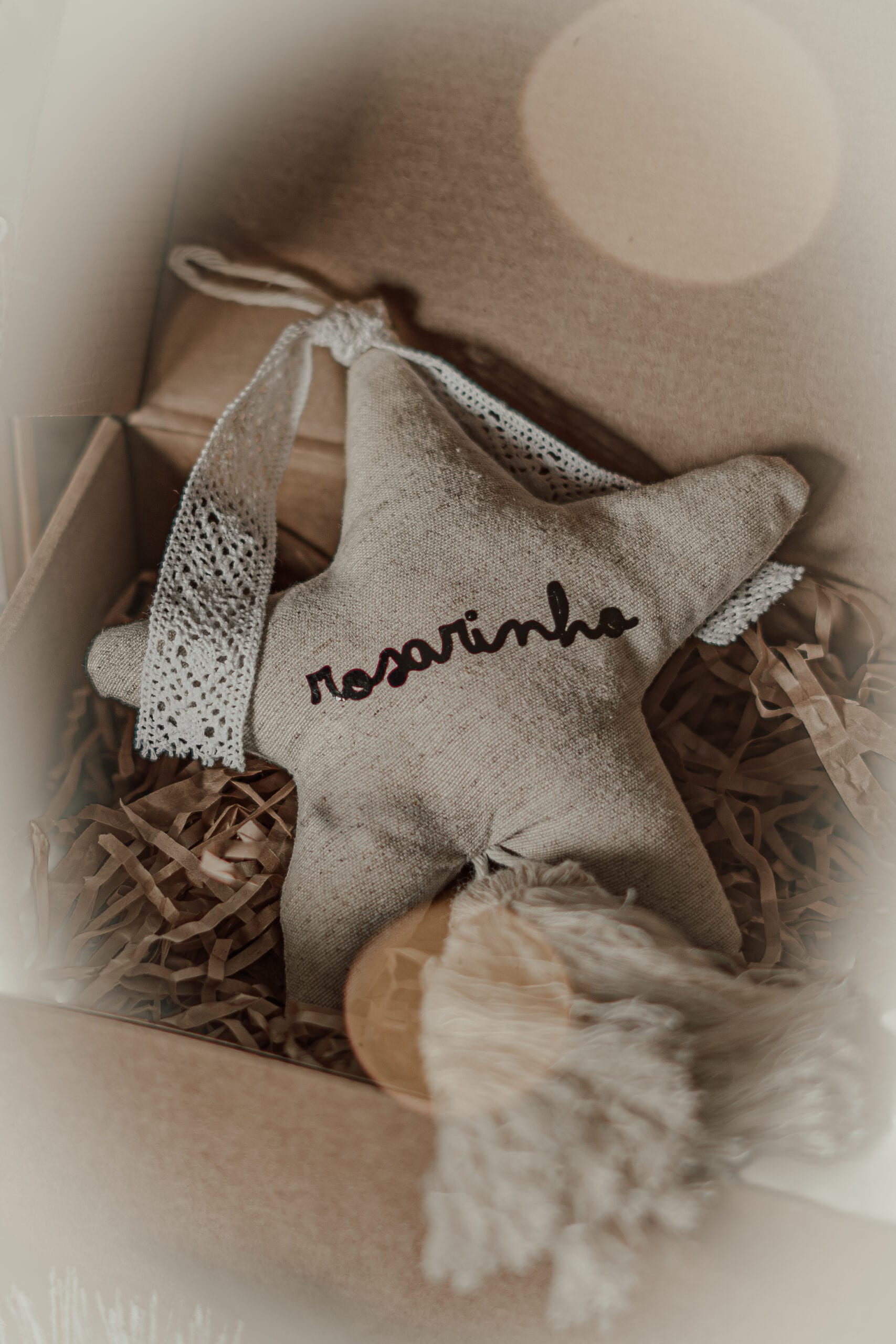 Os mais pequeninos também merecem ser presenteados. Foi a pensar neles que criámos a nossa estrela pendente em algodão com enchimento, personalizada com o nome do bebé ou da criança — um mimo cheio de ternura para este Natal.