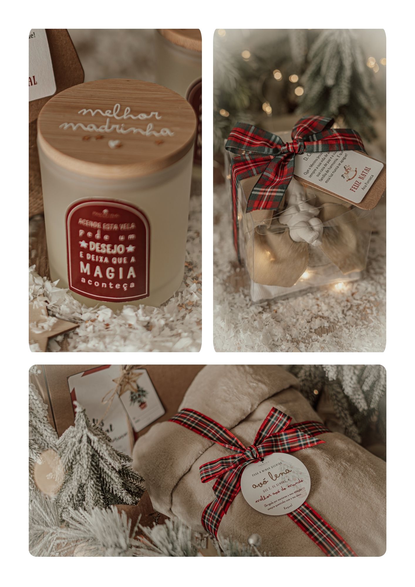 - box perfumada com essência de talco e etiqueta com mensagem personalizada.